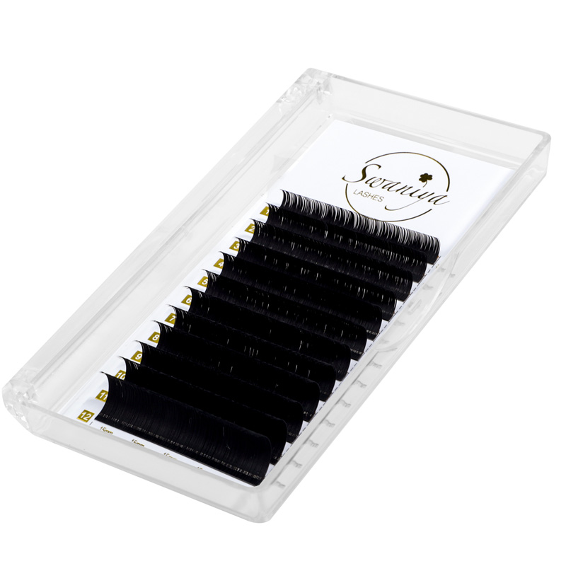 Swaniya Classic lash extensions feature a matte black color with no blue tint, which makes them perfect for creating classic lash sets. The deep black color helps to accentuate the natural beauty of the eyes, making them appear bigger, brighter and more alluring.